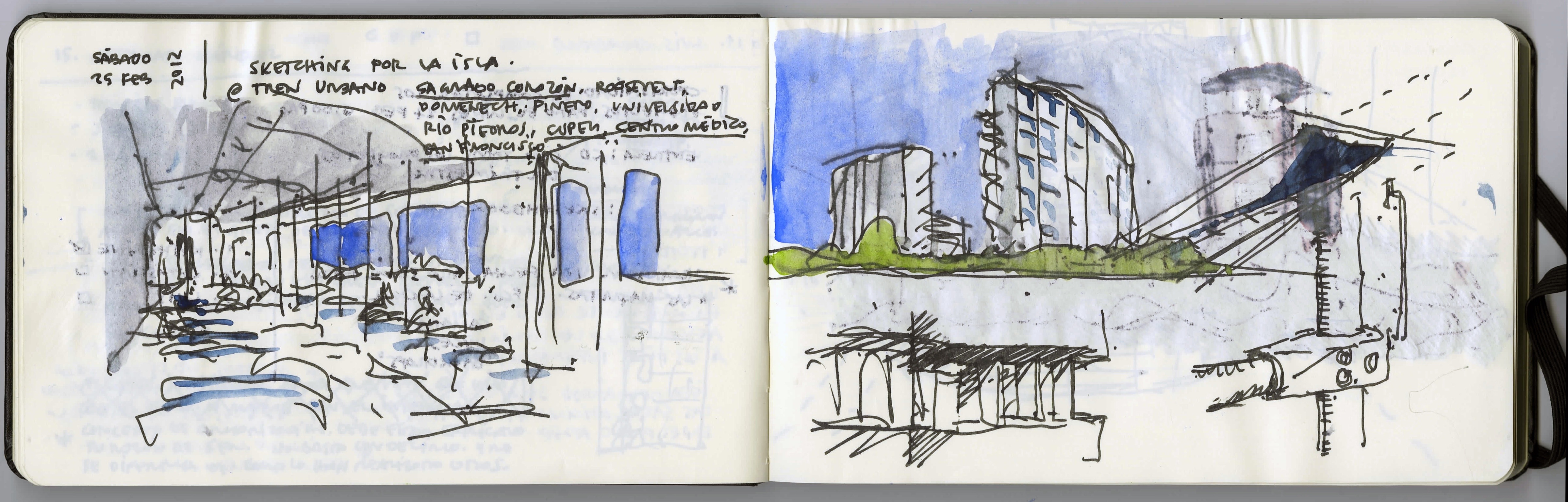 Here are some sketches I made on our last tour sketching por la isla. This time we decided to draw from the “Tren Urbano” (San Juan’s only metro line).