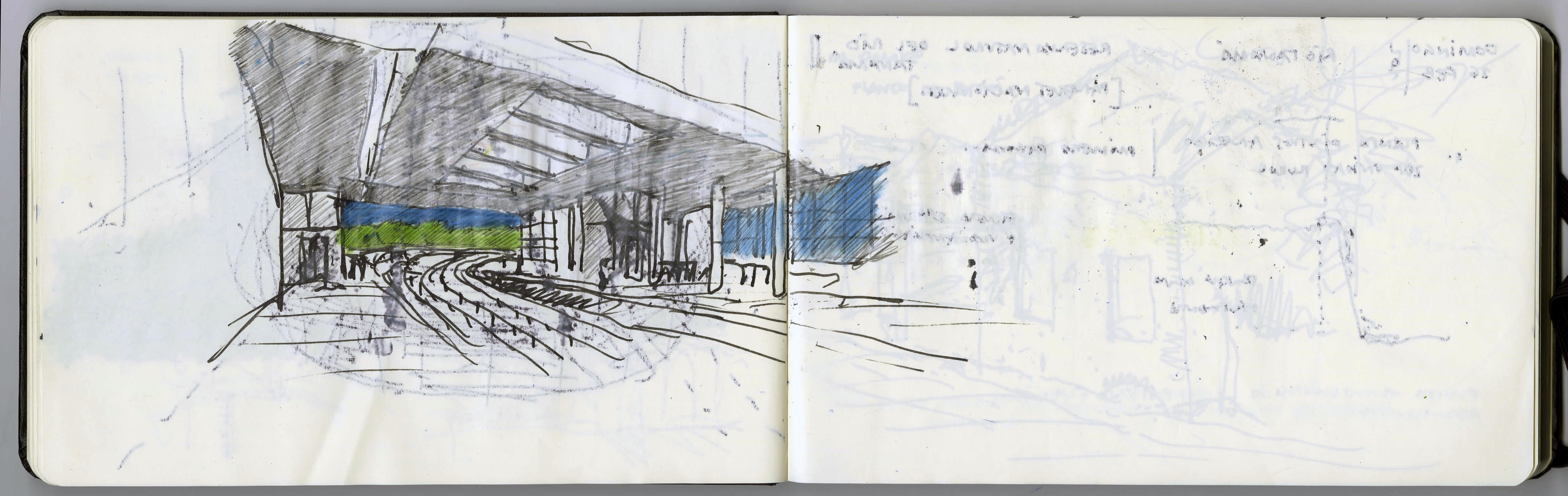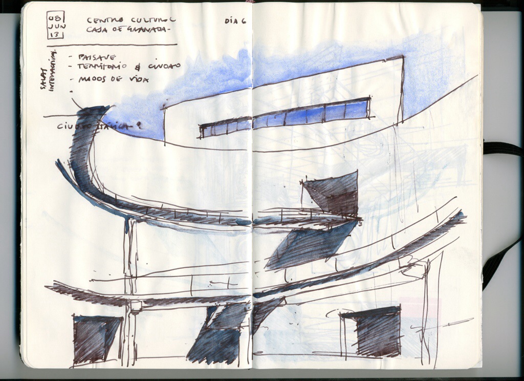 This is a follow up on our trip to Italy and France last summer where we got the chance to visit the cultural complex at Firminy-Vert. Here are a few quick sketches made on site; a few trying to capture the feeling of the interior space.