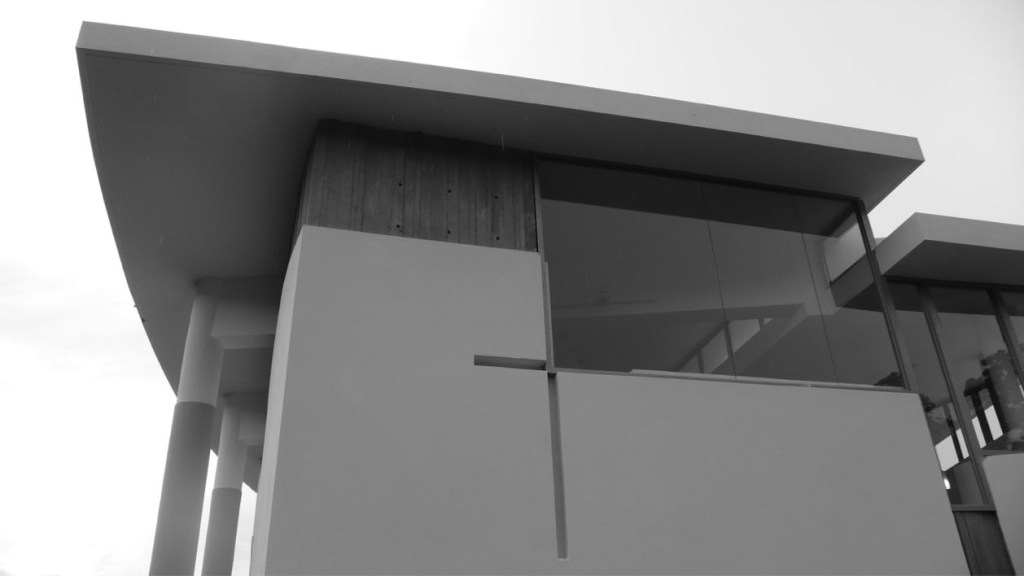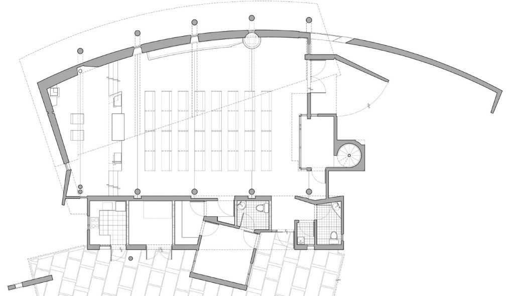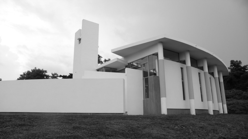 A 100-seat chapel with ancillary spaces in a remote suburban setting outside Humacao. For security, openings in the reinforced concrete structure were minimized, while clerestory glazing frames the surrounding mountains.