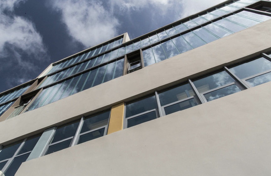 16,000 sq ft four-story addition providing new studio spaces, lecture halls, and support facilities. 32,000 sq ft interior retrofitting and space planning of two stories of the Architecture administrative and faculty offices, classrooms, and the existing studio space.