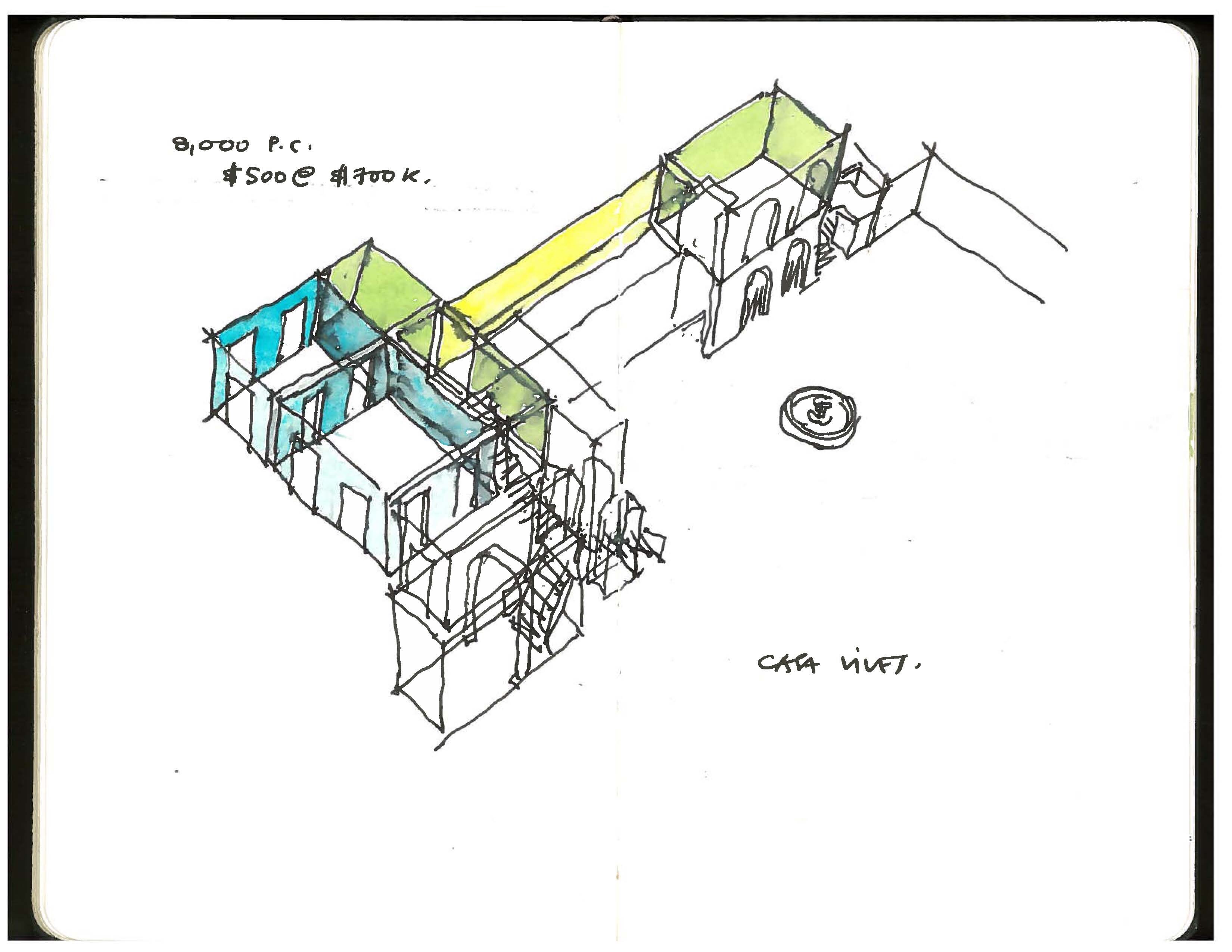 * We decided just to include our sketches, photos of the process and images of the finished product. But in Puerto Rico, for far too long, traditional means and methods of construction like brick, stone or rubble masonry, had been lost. During the mid-20th Century, disguised as a way to withstand hurricanes, traditional construction including wood had been replaced by reinforced concrete (and eventually steel) construction.