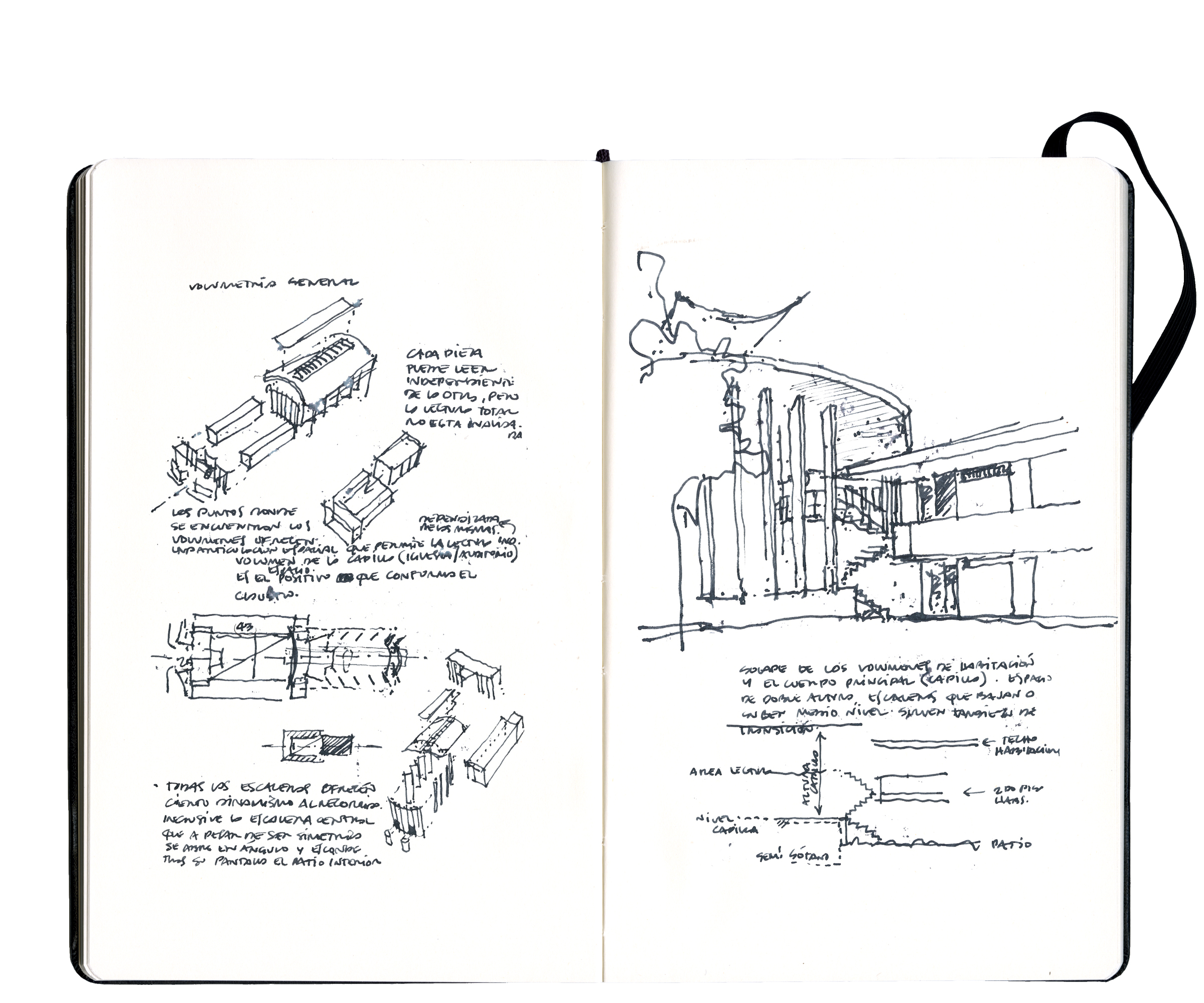 Los dibujos arriba son mi intento de ilustrar y captar el sentido de la secuencia espacial del jardín de la Fundación.